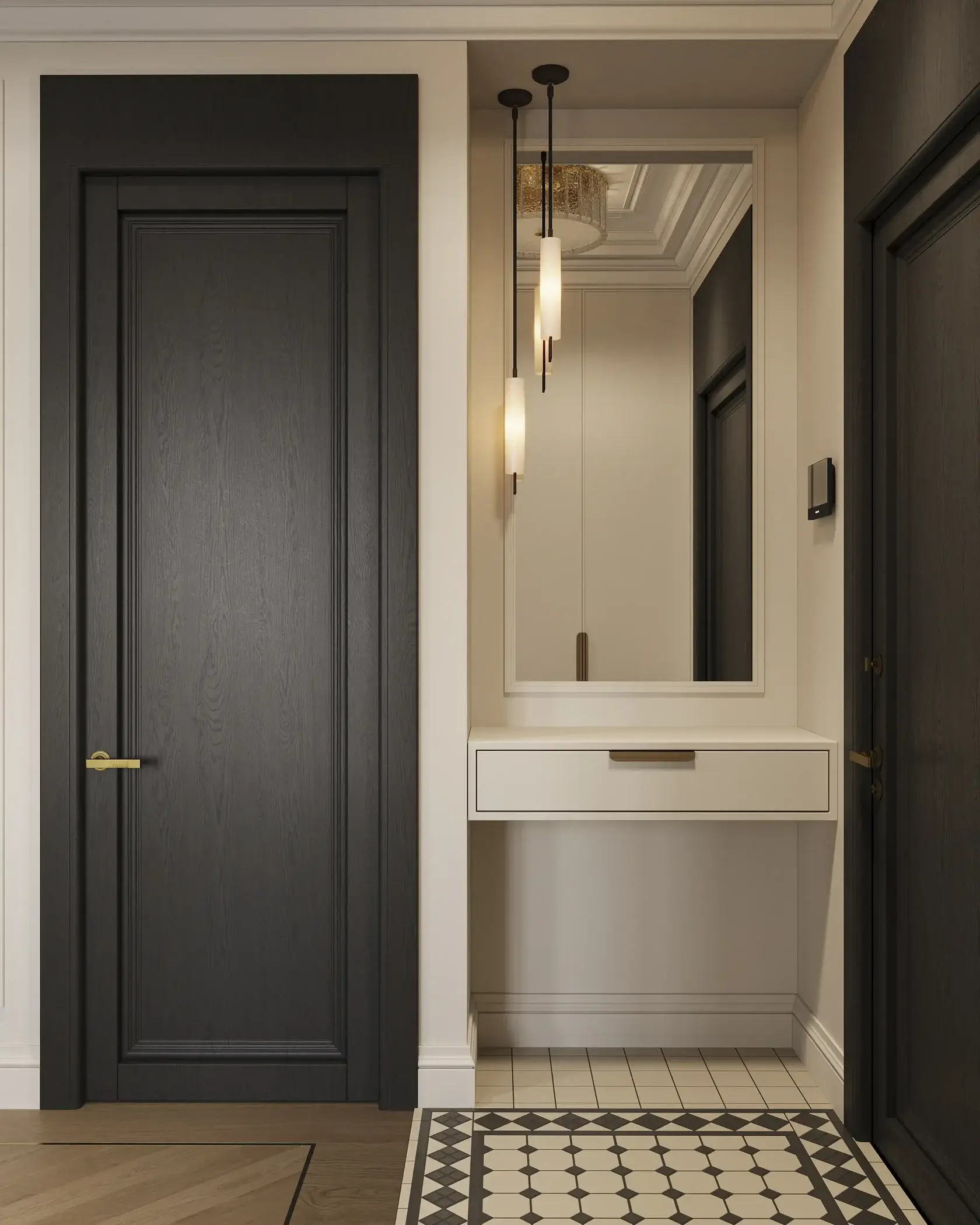 Самой частой ошибкой в прихожей оказывается расчёт пространства только под шкаф. В реальности нужно место, чтобы открыть входную дверь, поставить пакеты, посадить ребенка, переобуться, разойтись вдвоем. Второй частый промах — это отсутствие запаса под зиму. В холодный сезон объем вещей резко растет, и если место рассчитано впритык, прихожая сразу превращается в склад.