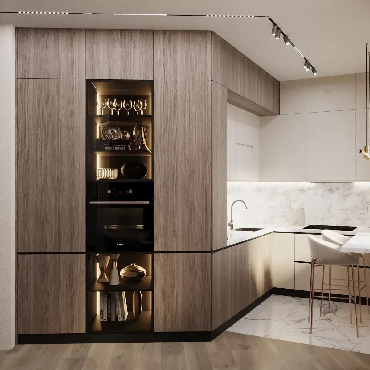 - Кухня в части проходов и рабочих маршрутов, не под всем гарнитуром.