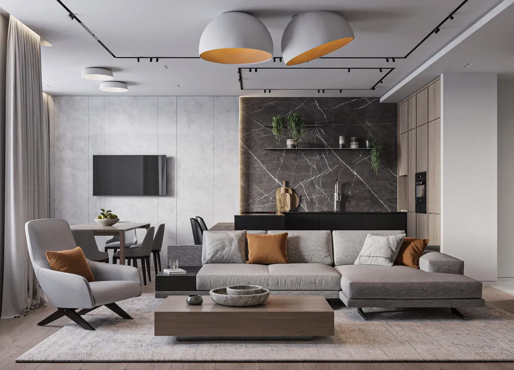 Разноуровневые конструкции с точечной подсветкой, вставками и глянцем были популярны в начале 2000-х. Сегодня они выглядят громоздко. Простые решения работают лучше: одноуровневый потолок, аккуратная отделка и встроенное освещение. В моде трековые светильники и чистая геометрия.