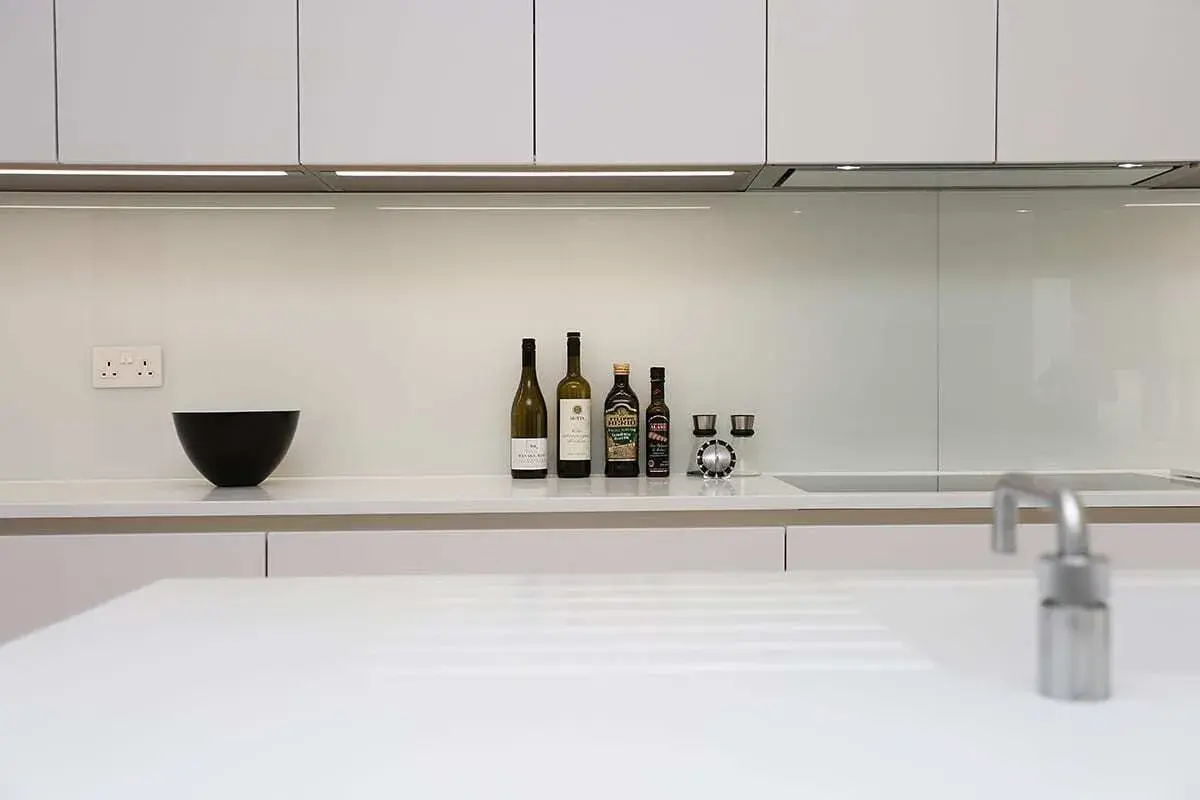 Изображения кофе, мостов и цветов на кухонных фартуках потеряли актуальность. Такие элементы визуально удешевляют интерьер. Лучше использовать однотонное стекло или материал с фактурой, близкой к натуральной. То же касается фотопечати на потолках и полах — зрелищно, но неуместно в современном интерьере.